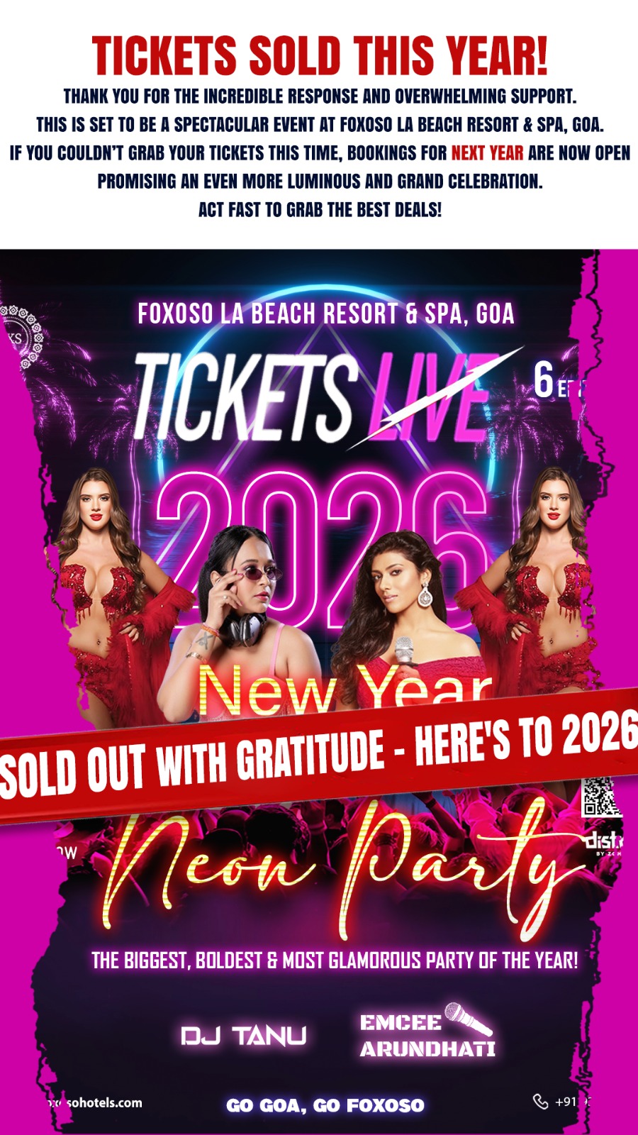Join our Neon Theme New Year Bash at Foxoso La Beach Resort & Spa, Goa — and you could party for FREE!